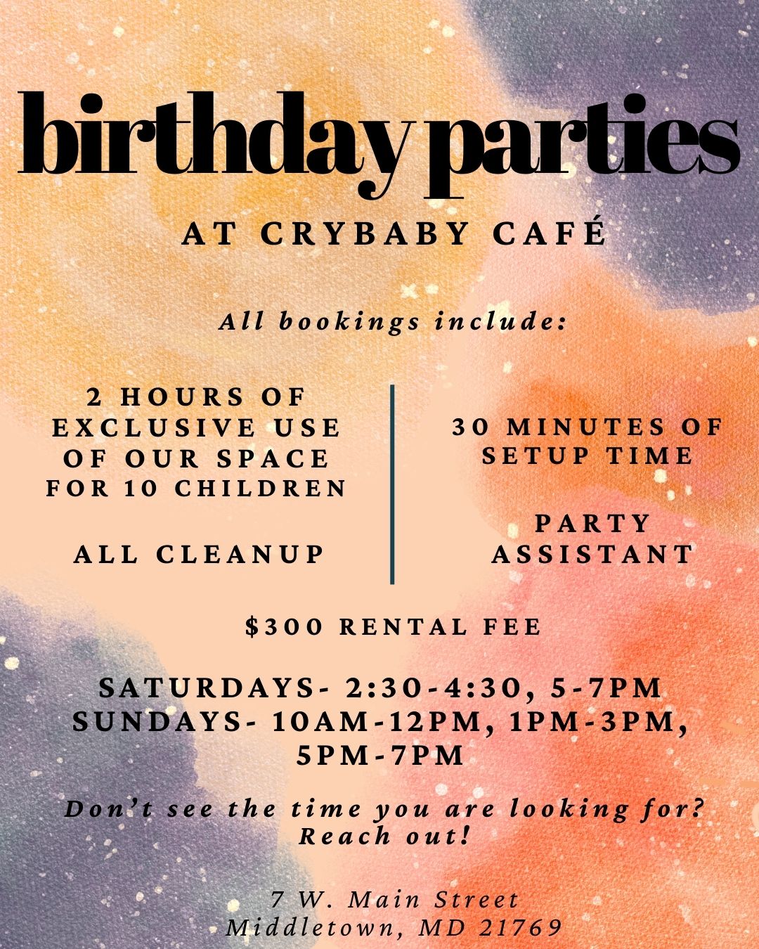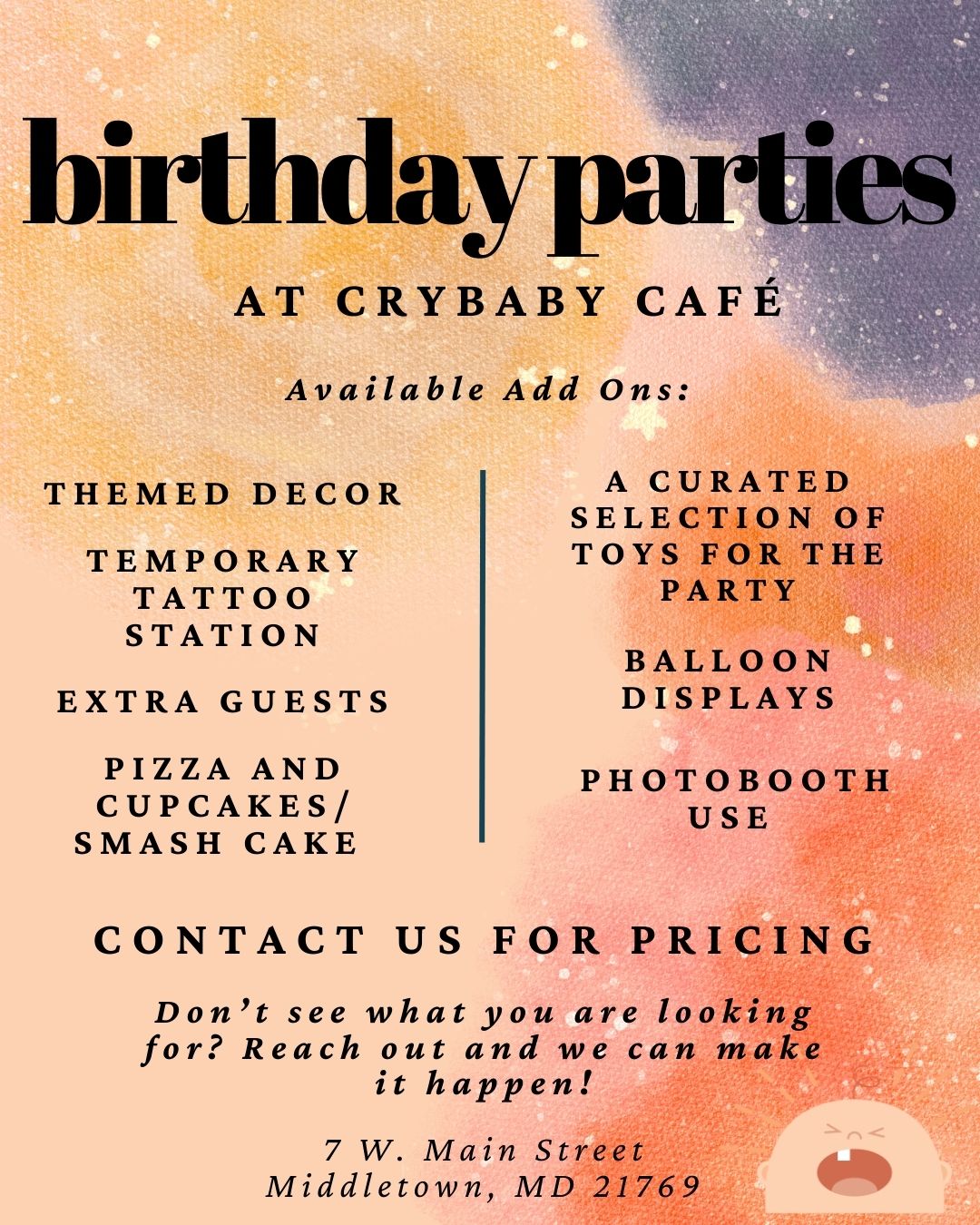 Let Crybaby Café & Toy Library host your next important gathering!!